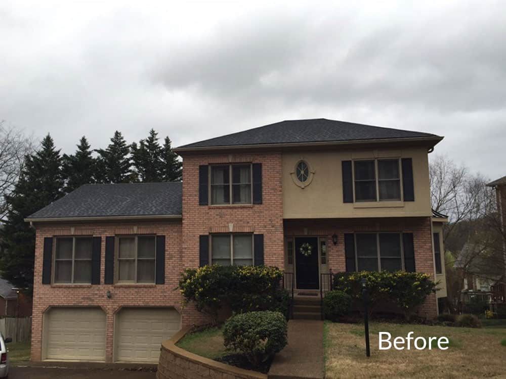This repeat customer met with our in home color consultant. We love how much the white brightened up the house. The timeless satin black on the trim, shutters and doors looks so rich. We matched their black roof shingle to make everything really pop!